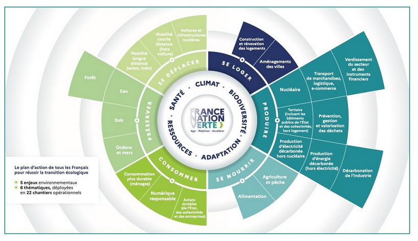 Les travaux de la planification écologique se structurent autour de 6 thématiques déclinées en 22 chantiers d’action :