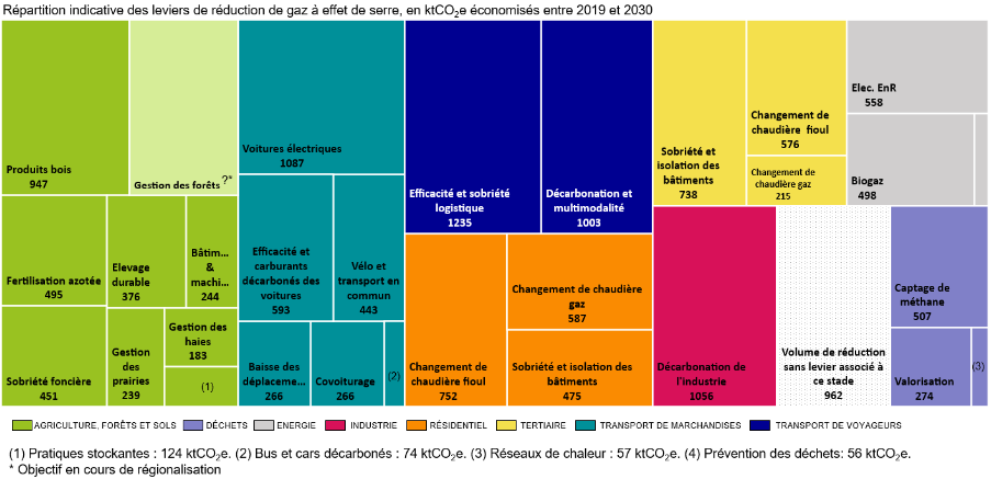 Afin d’atteindre les objectifs à l’horizon 2030, des panoramas des leviers ont été partagés par le SGPE pour les sujets de la décarbonation, de la préservation des ressources et de biodiversité. Cela illustre la diversité des actions et la multiplicité des secteurs d’activité pouvant contribuer à la transition écologique.
